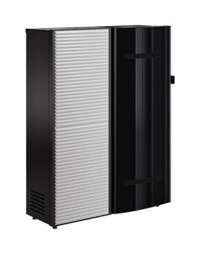 Alba est un habillage en céramique composé de grands panneaux en faïence striée. Sa porte toute hauteur avec vitre Magic Light apporte une touche résolument moderne au poêle Ace.
