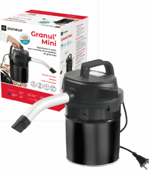 Aspirateur à main Granul’Mini 500 W, cuve 4 L, filtre HEPA, compact et léger pour entretien des poêles à granulés.