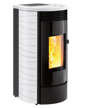 L’habillage Drum ED reprend les codes du modèle Drum dans une version premium pour Atlantis ED. Ses panneaux en céramique soulignés de liserés mettent en valeur la forme arrondie du poêle et offrent une présence chaleureuse et intemporelle.