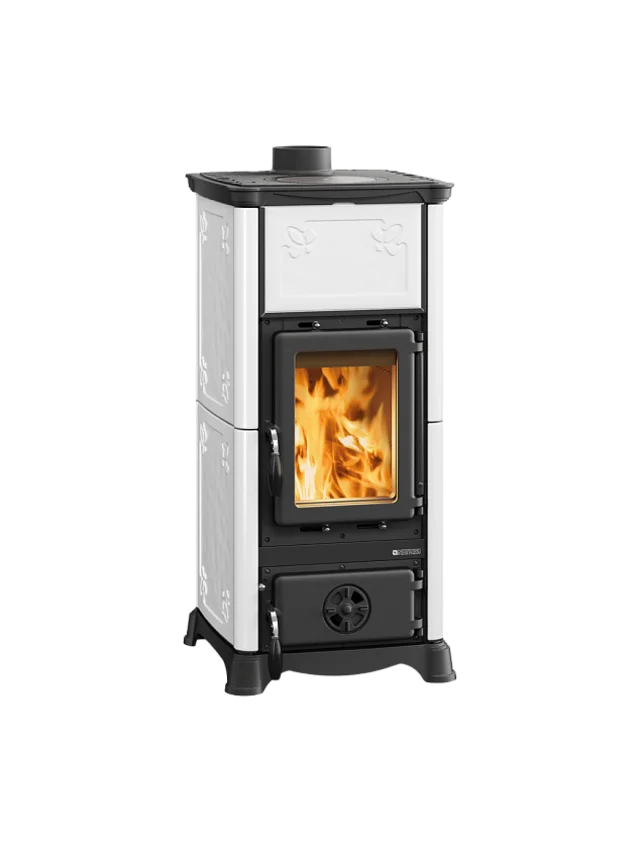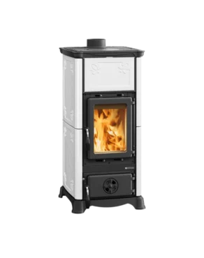 Poêle fonte émaillée avec majolique, 6,5 kW et rendement exceptionnel.