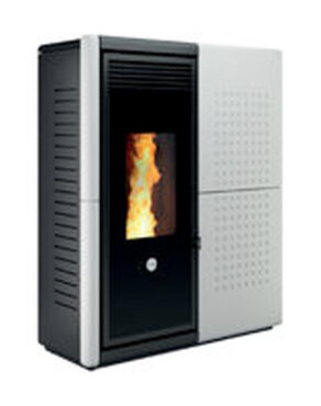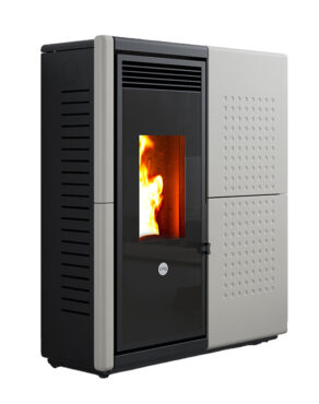 Fendor est un habillage combinant acier et façade en faïence. Ses gravures et sa grande porte vitrée composent un ensemble moderne et chaleureux, parfaitement adapté au poêle Axe.