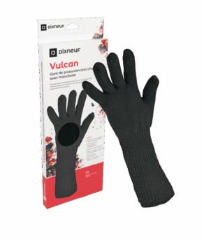 Gant anti‑chaleur Vulcan en fibre aramide, manchette 15 cm, résiste à 250 °C – idéal pour manipuler les bûches en toute sécurité.