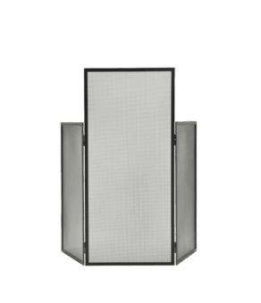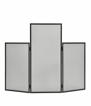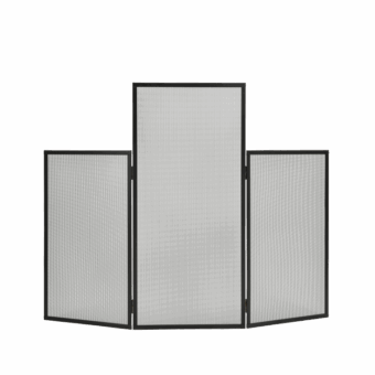 Pare-feu 3 volets en acier noir givré. Design vertical idéal pour les poêles hauts ou suspendus, protège efficacement des projections et de la chaleur.