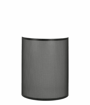 Pare-feu cintré en acier noir givré (70 × 35 × 90 cm). Conception enveloppante pour une protection renforcée et un rendu contemporain.