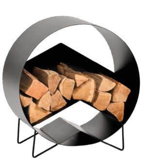 Range‑bûches Toscan en acier noir givré – dimensions 60 × 33 × 64 cm, capacité 25 bûches, 3 compartiments avec dos semi‑fermé.
