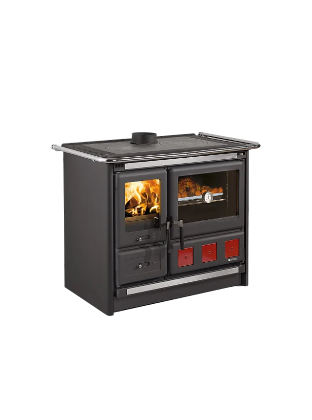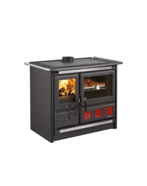 Cuisinière bois grande capacité avec four 78 L et excellent rendement.