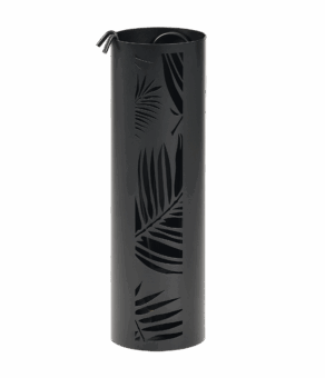 Serviteur de cheminée Borneo en acier noir givré avec motifs feuille de palmier gravés — design décoratif et fonctionnel.