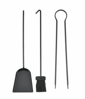 Serviteur de cheminée Origami en acier noir givré – dimensions 22 × 15 × 60 cm, 3 accessoires inclus.