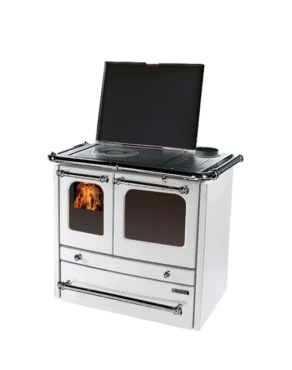 Cuisinière bois bouilleur dernière génération, design robuste et moderne.